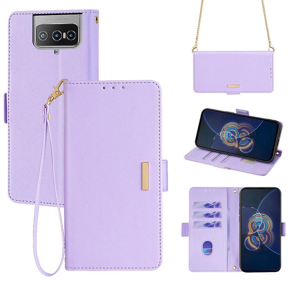 For ASUS Zenfone 8 Flip ZS672KS Crossbody Chain Leather Phone Case(Purple)