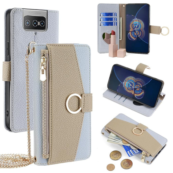 For Asus Zenfone 8 Flip ZS672KS Crossbody Litchi Texture Leather Phone Case(Blue)
