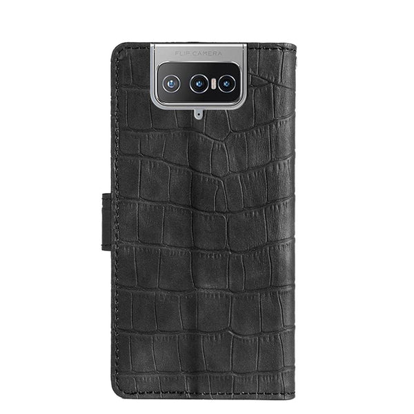 For Asus Zenfone 8 Flip ZS672KS Skin Feel Crocodile Texture Magnetic Clasp PU Leather Phone Case(Black)