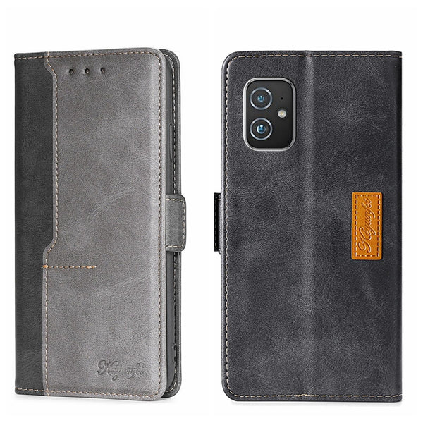 For Asus ZenFone 8 ZS590KS Contrast Color Side Buckle Leather Phone Case(Black + Grey)