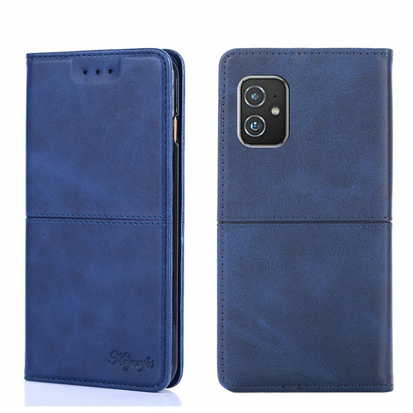 For Asus ZenFone 8 ZS590KS Cow Texture Magnetic Horizontal Flip Leather Phone Case(Blue)