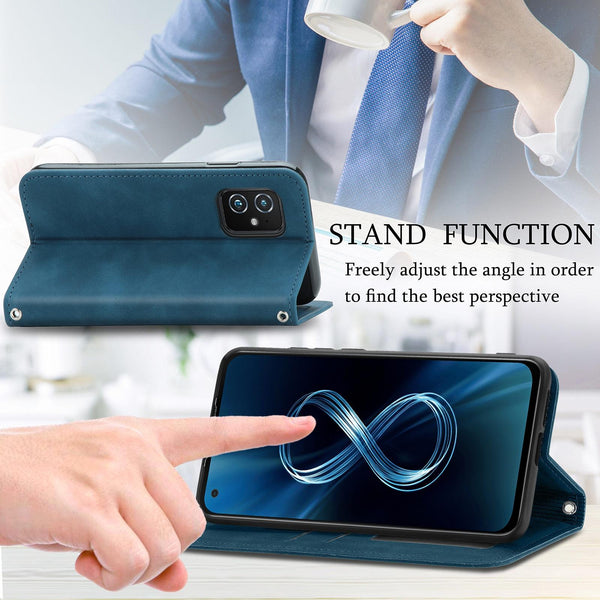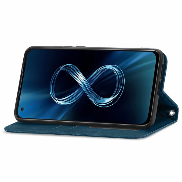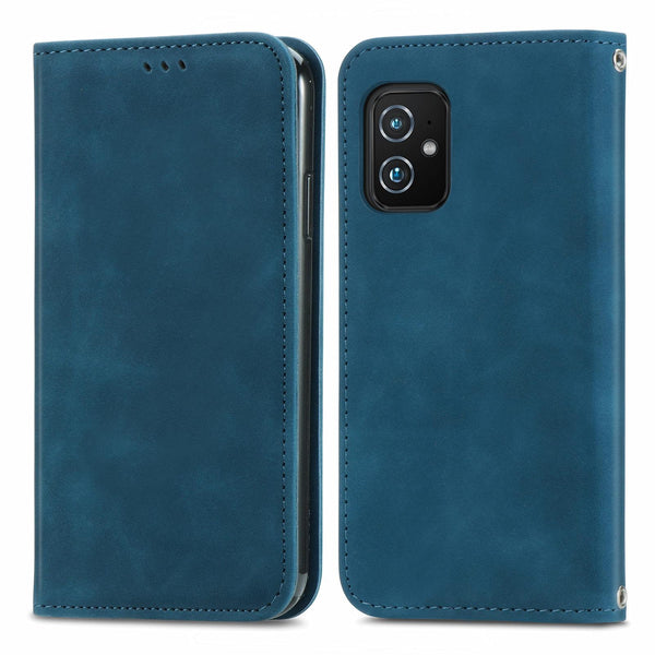 For Asus Zenfone 8 ZS590KS Retro Skin Feel Business Magnetic Horizontal Flip Leather Case with Holder & Card Slots & Wallet & Photo Frame(Blue)