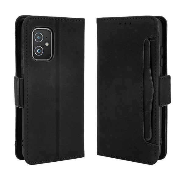 For Asus Zenfone 8 ZS590KS Skin Feel Calf Pattern Horizontal Flip Leather Case with Holder & Card Slots & Photo Frame(Black)