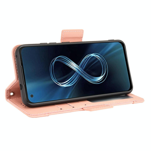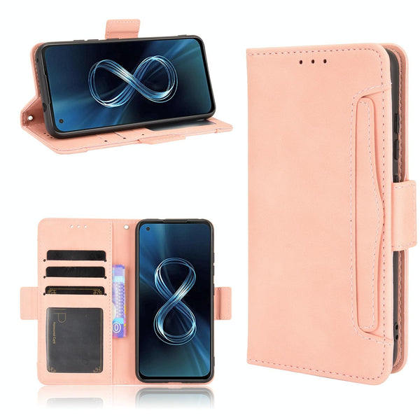 For Asus Zenfone 8 ZS590KS Skin Feel Calf Pattern Horizontal Flip Leather Case with Holder & Card Slots & Photo Frame(Pink)