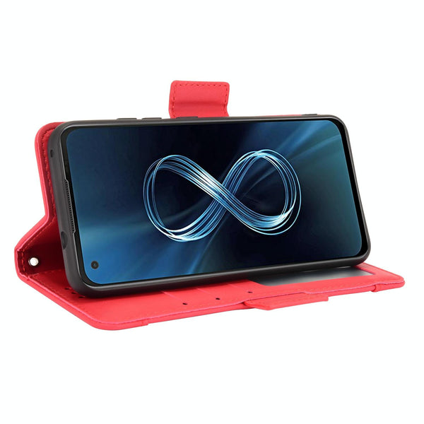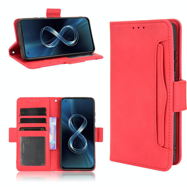 For Asus Zenfone 8 ZS590KS Skin Feel Calf Pattern Horizontal Flip Leather Case with Holder & Card Slots & Photo Frame(Red)
