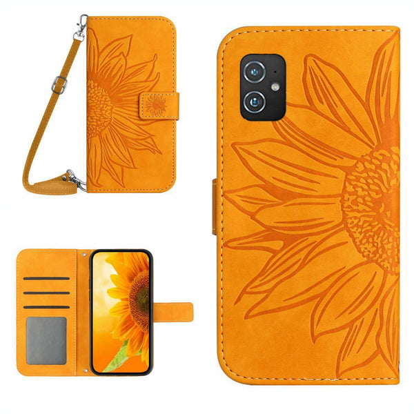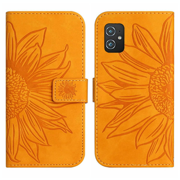 For Asus ZenFone 8 ZS590KS Skin Feel Sun Flower Pattern Flip Leather Phone Case with Lanyard(Yellow)
