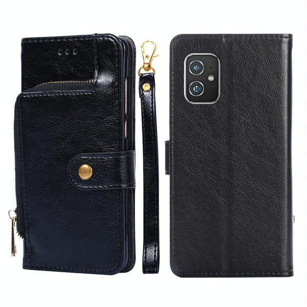 For Asus ZenFone 8 ZS590KS Zipper Bag PU + TPU Horizontal Flip Leather Phone Case(Black)