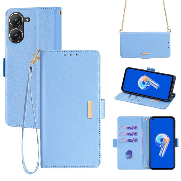 For ASUS Zenfone 9 / 9Z Crossbody Chain Leather Phone Case(Blue)