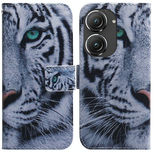 For Asus Zenfone 9 Coloured Drawing Leather Phone Case(Tiger)