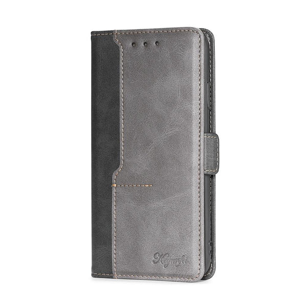 For Asus Zenfone 9 Contrast Color Side Buckle Leather Phone Case(Black + Grey)