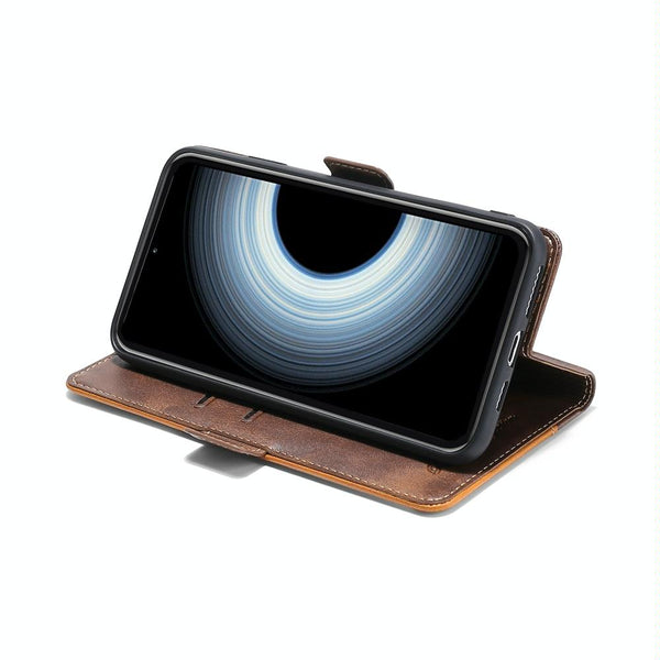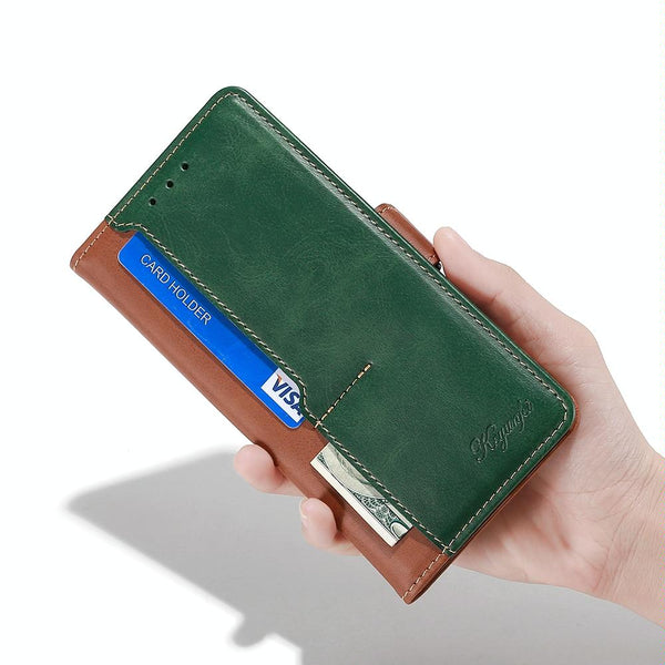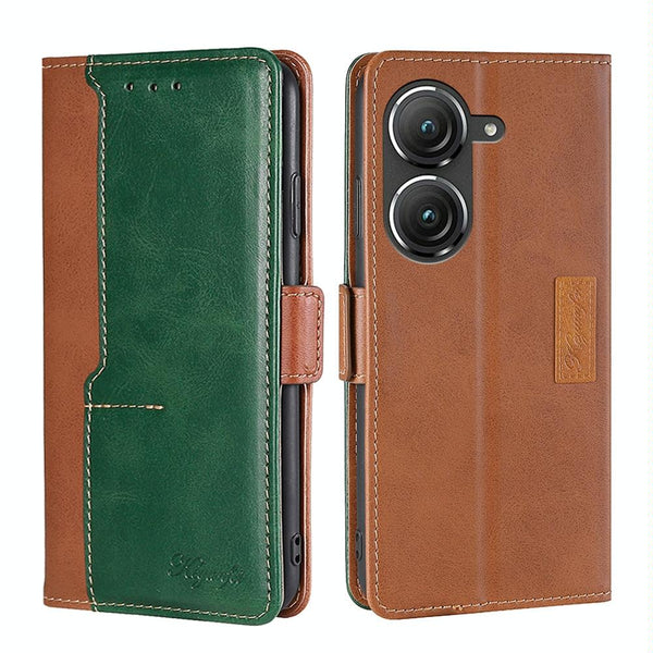 For Asus Zenfone 9 Contrast Color Side Buckle Leather Phone Case(Light Brown + Green)