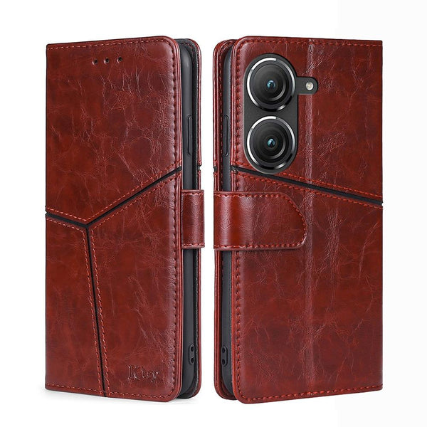 For Asus Zenfone 9 Geometric Stitching Leather Phone Case(Dark Brown)