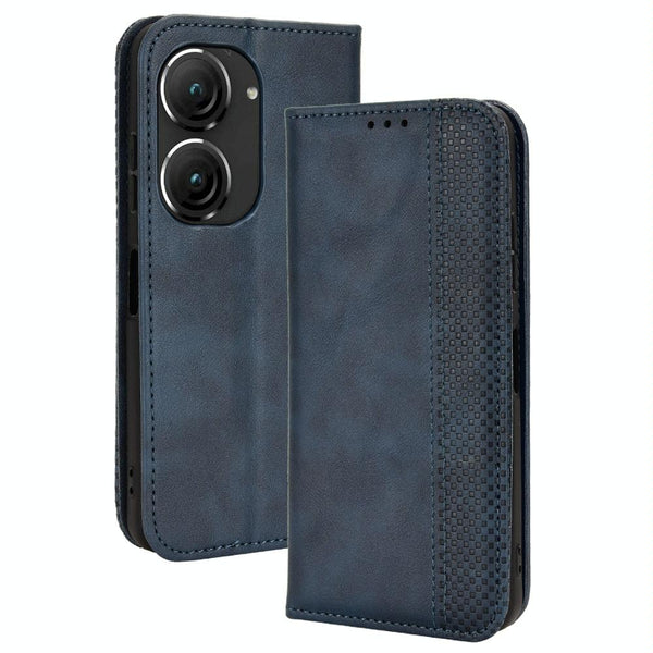 For ASUS Zenfone 9 Magnetic Buckle Retro Texture Leather Phone Case(Blue)