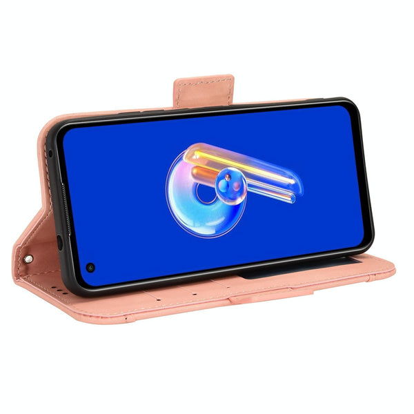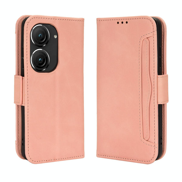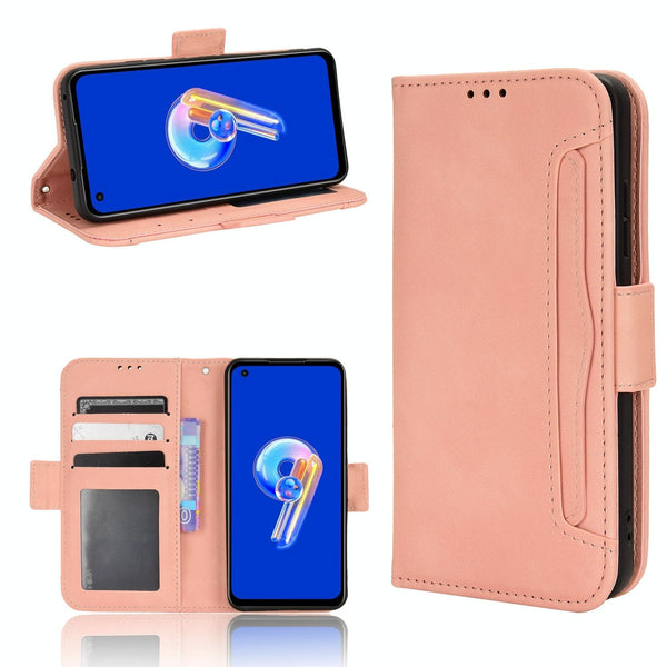 For ASUS Zenfone 9 Skin Feel Calf Texture Card Slots Leather Phone Case(Pink)