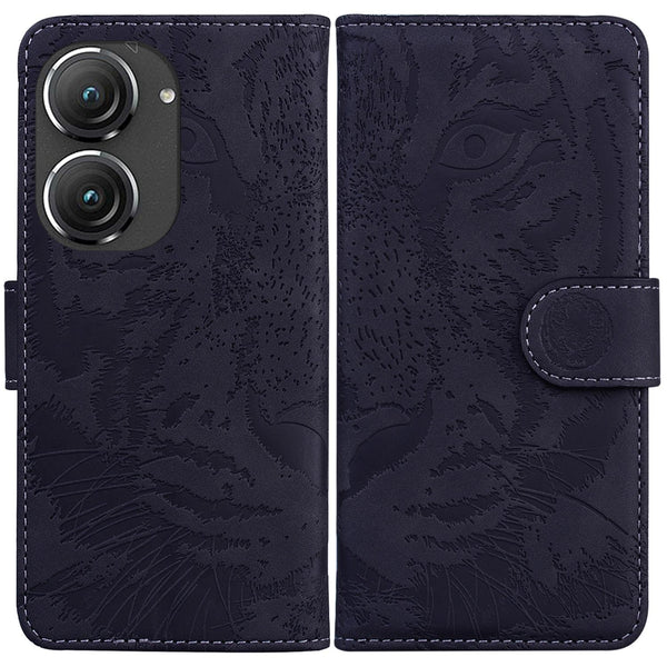 For Asus Zenfone 9 Tiger Embossing Pattern Flip Leather Phone Case(Black)