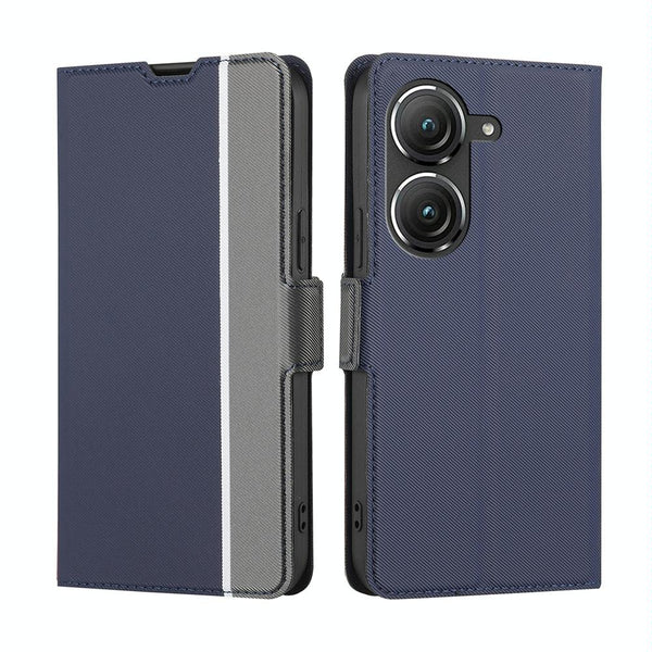 For Asus Zenfone 9 Twill Texture Side Button Leather Phone Case(Blue)