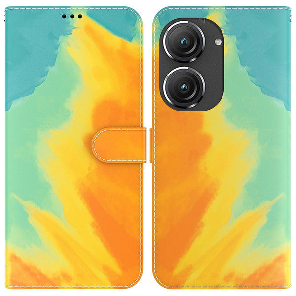 For Asus Zenfone 9 Watercolor Pattern Flip Leather Phone Case(Autumn Leaf)