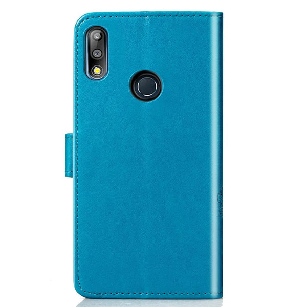 Lucky Clover Pressed Flowers Pattern Leather Case for ASUS ZB633KL, with Holder & Card Slots & Wallet & Hand Strap (Blue)