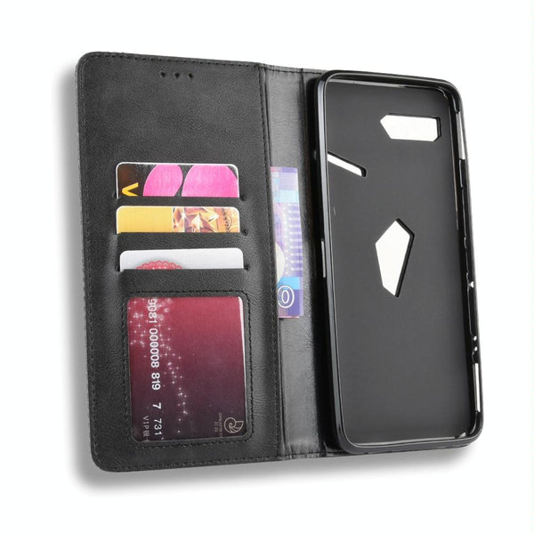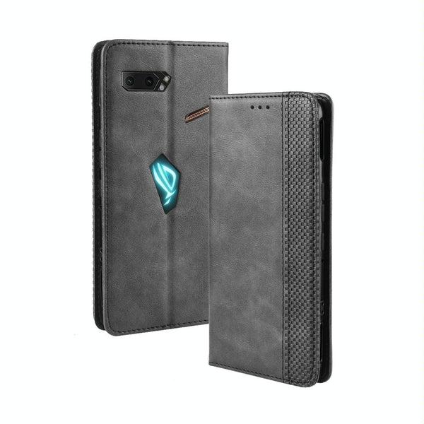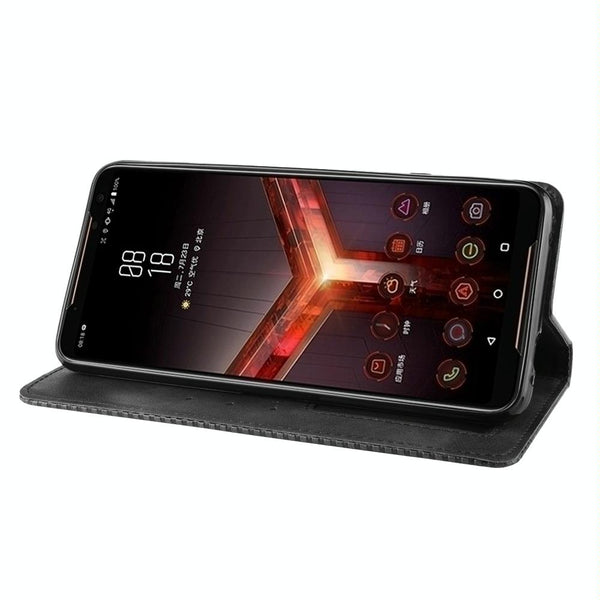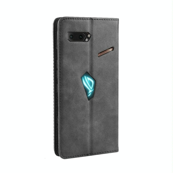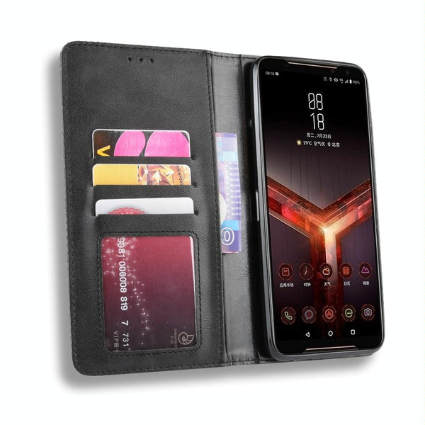 Magnetic Buckle Retro Crazy Horse Texture Horizontal Flip Leather Case for Asus ROG Phone II ZS660KL ,with Holder & Card Slots & Photo Frame(Black)