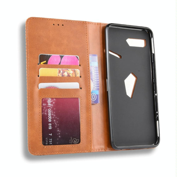 Magnetic Buckle Retro Crazy Horse Texture Horizontal Flip Leather Case for Asus ROG Phone II ZS660KL ,with Holder & Card Slots & Photo Frame(Brown)
