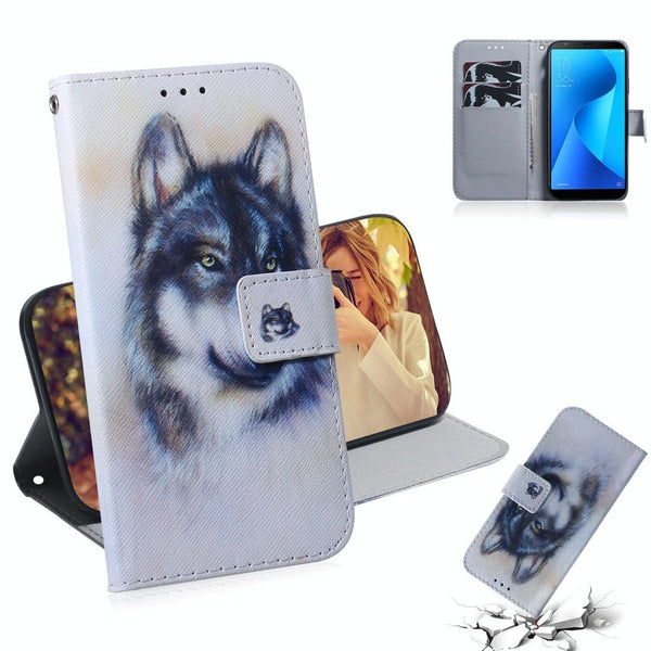 White Wolf Pattern Coloured Drawing Horizontal Flip Leather Case for Asus Zenfone Max Plus (M1) ZB570TL, with Holder & Card Slots & Wallet