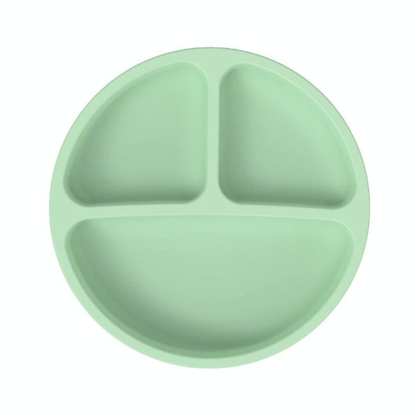 3 Compartments Baby Silicone Suction Cup Plate Childrens Complementary Feeding Bowl(Green)