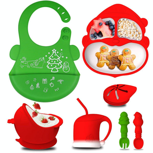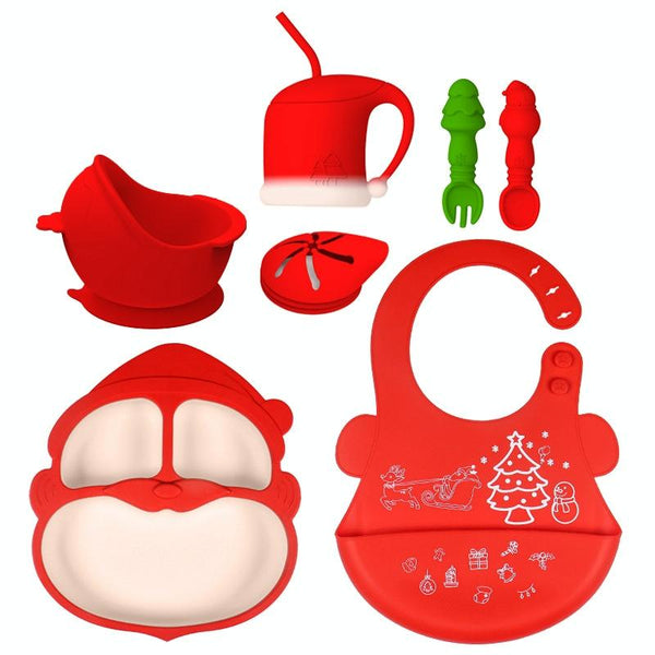7-in-1 Silicone Children Tableware Set Christmas Gift(Red)
