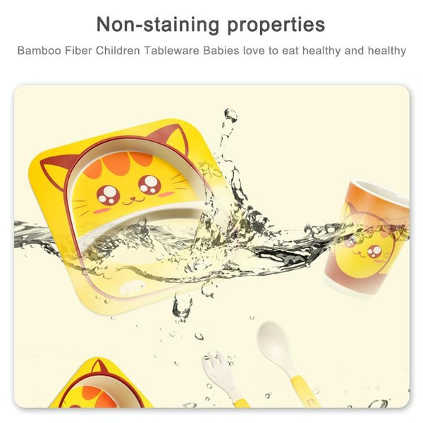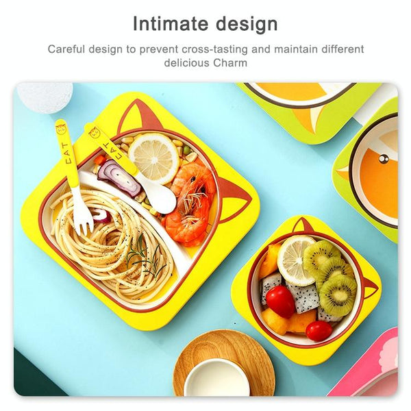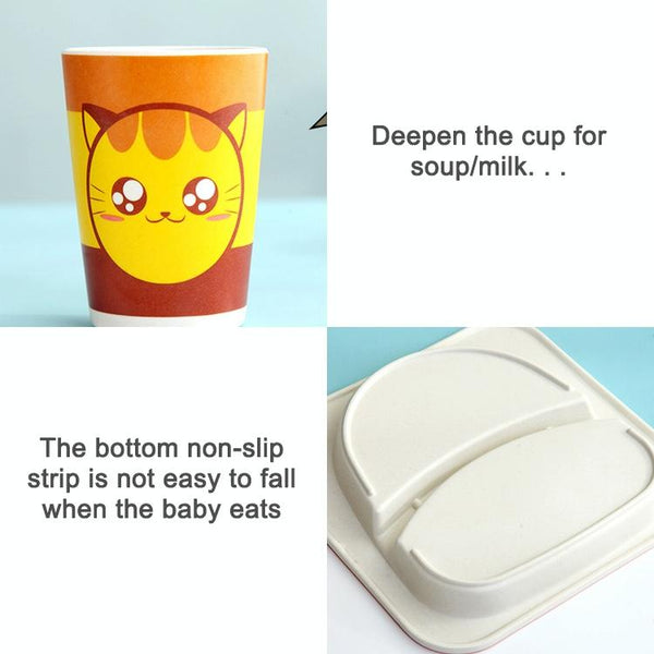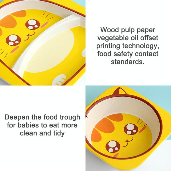 Baby Dish Tableware Set Cartoon Fork Feeding Dishes for Kids Utensils Natural Bamboo Fiber Bowl With Cup Spoon Plate(Penguin)