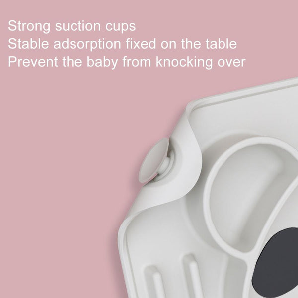 Baby Integrated Suction Cup Grid Food Plate Children Panda Silicon Glue Dishes(With Fork and Spoon Black White)