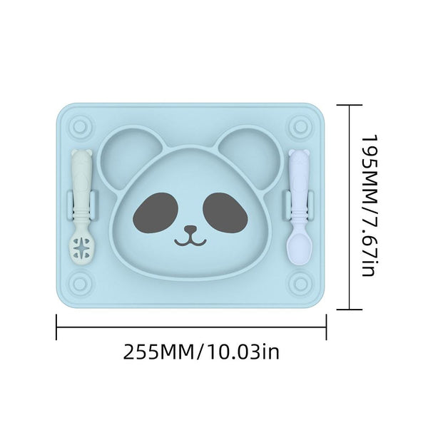 Baby Integrated Suction Cup Grid Food Plate Children Panda Silicon Glue Dishes(With Fork and Spoon Sky Blue)
