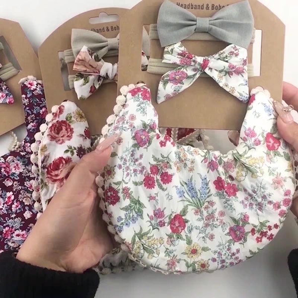 Baby Linen Cotton Printed Double-sided Saliva Towel Headband Set(DP021-11)