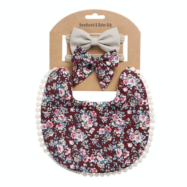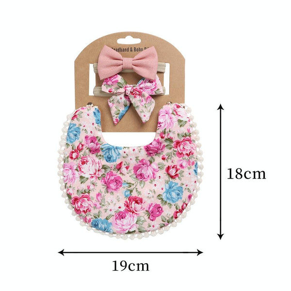 Baby Linen Cotton Printed Double-sided Saliva Towel Headband Set(DP021-12)