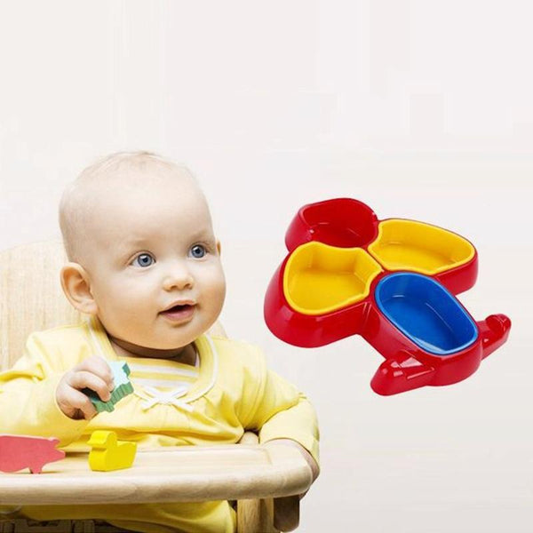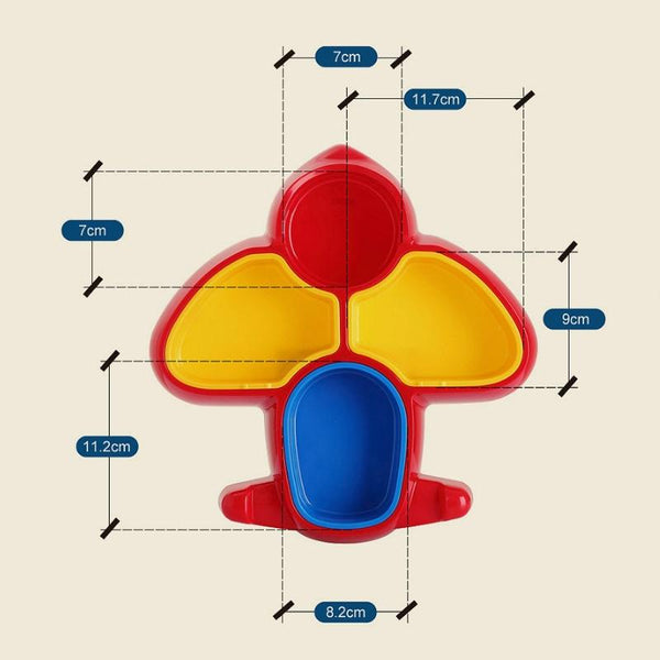 Baby Tableware Plastic Airplane Shape Divided Meal Bowl(Red)