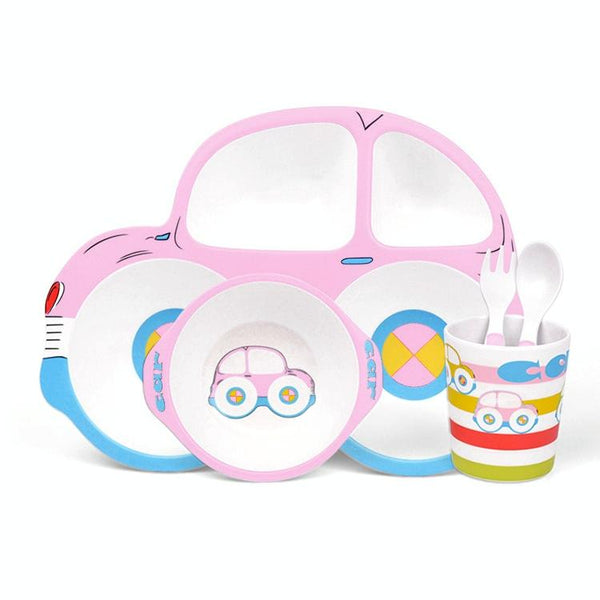Bamboo Fiber Cartoon Dinner Plate For Children(Pink)