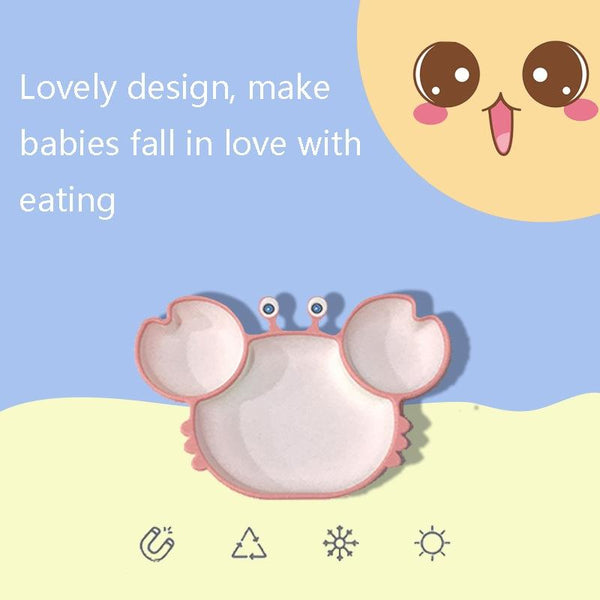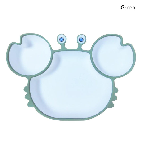 Children One-Piece Full Silicone Table Cartoon Crab Separation Plate(Green)