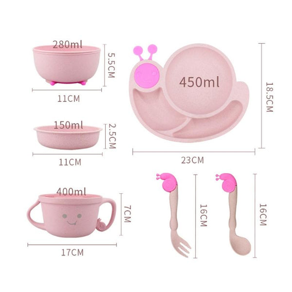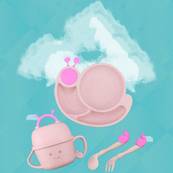 Creative Anti-scald Children Tableware Baby Snail Compartment Spoon Cup Bowl(Beige)