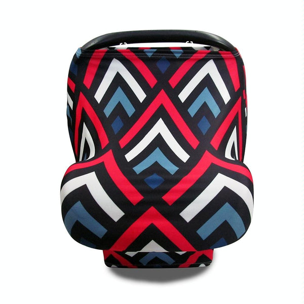 Multifunctional Enlarged Stroller Windshield Breastfeeding Towel Baby Seat Cover(Red Geometry)