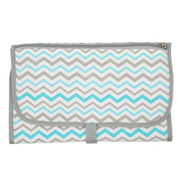 Portable Baby Changing Mat Multifunctional Baby Changing Table Waterproof Bag(Green Thin Waves)