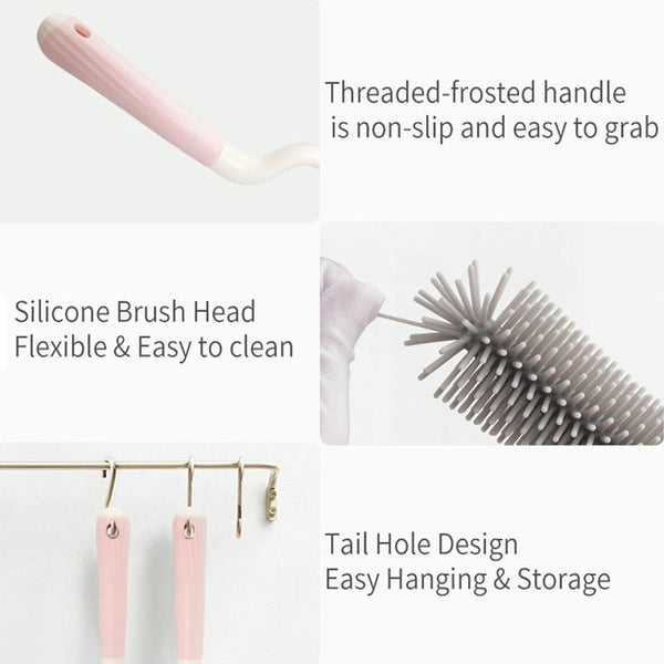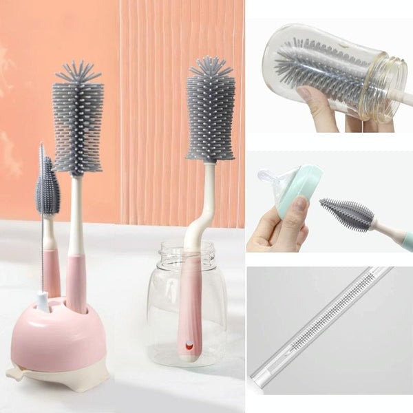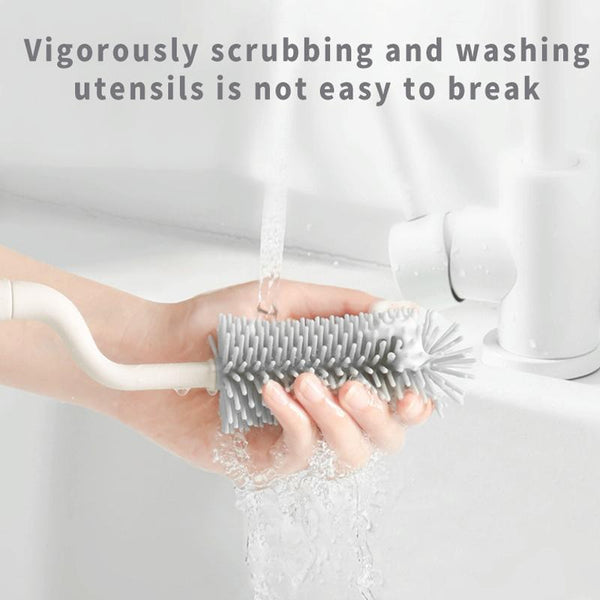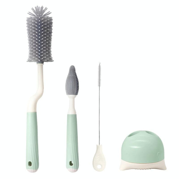Silicone Rotating Multifunction Cleaning Cup Brush Set Bottle Nipple Straw Cleaner Brush(Bent Handle Green)