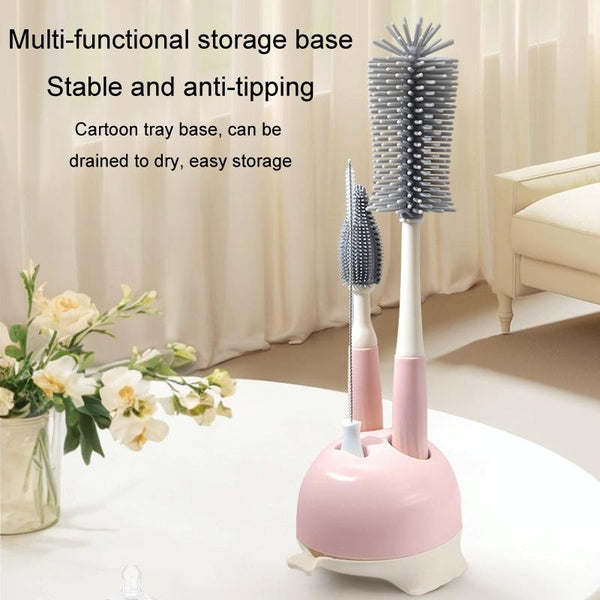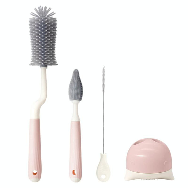 Silicone Rotating Multifunction Cleaning Cup Brush Set Bottle Nipple Straw Cleaner Brush(Bent Handle Pink)