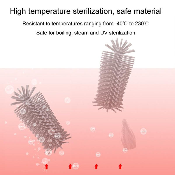 Silicone Rotating Multifunction Cleaning Cup Brush Set Bottle Nipple Straw Cleaner Brush(Straight Handle Pink)