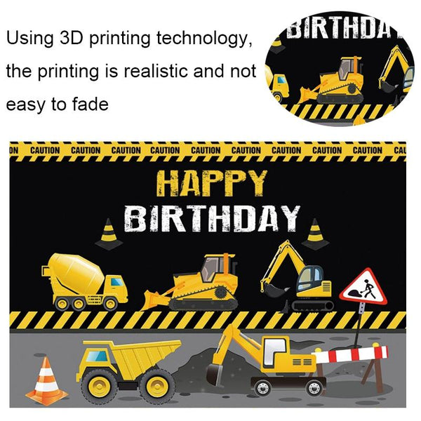 1.2m x 0.8m Construction Vehicle Series Happy Birthday Photography Background Cloth(11400155)