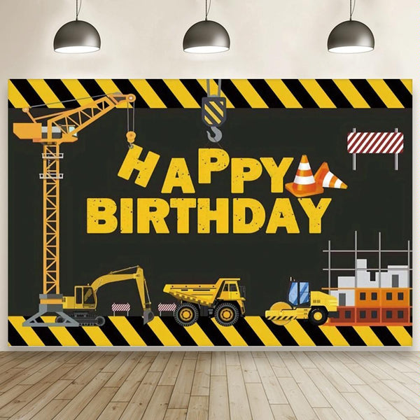 1.5m x 1mConstruction Vehicle Series Happy Birthday Photography Background Cloth(Mdn08682)