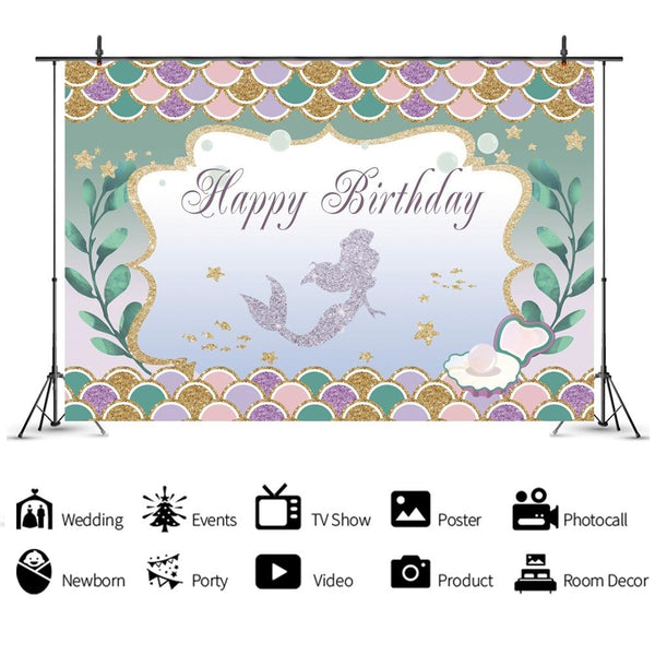 120 x 80cm Mermaid Happy Birthday Photography Background Cloth(12002575)