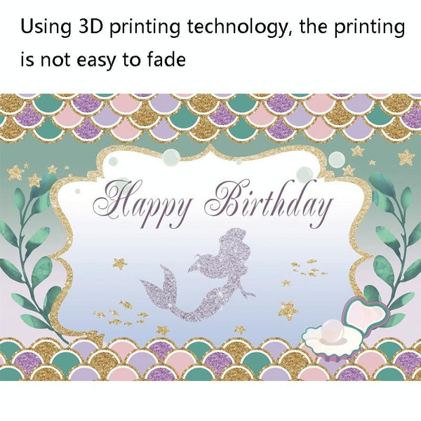120 x 80cm Mermaid Happy Birthday Photography Background Cloth(12009608)