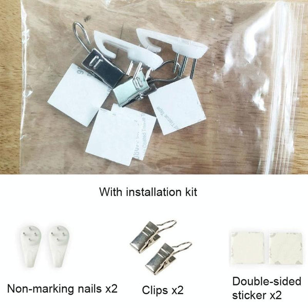 7. Packing list: background fabric x1, non-marking nails x2, clips x2, double-sided stickers x2