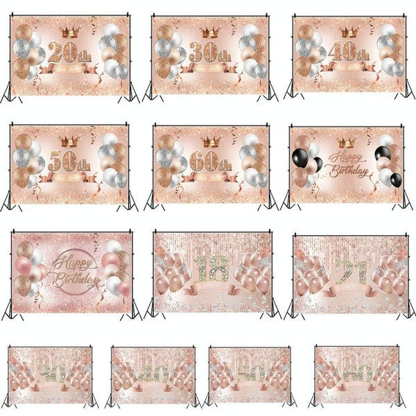 MDU05523 1.5m x 1m Rose Golden Balloon Birthday Party Background Cloth Photography Photo Pictorial Cloth