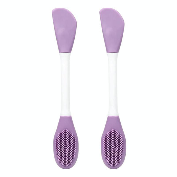 2pcs Dual Head Silicone Face Mask Brush Face Cleansing Massage Brush Mud Mask Applicator(Purple)