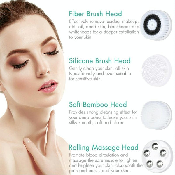 4-In-1 Electric Facial Cleansing Brush To Clean Pores And Blackheads Makeup Remover Brush Waterproof Silicone Cleansing Instrument(Green)