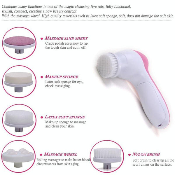 5 in 1 Beauty Care Brush Massager Scrubber Face Skin Care Electric Facial Cleanser